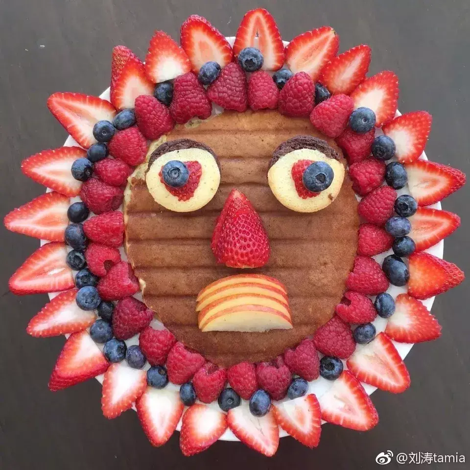 就连给孩子做的蛋糕,里面的水果用的都是莓类:蓝莓、草莓、树莓,全是低GI但却营养很高的水果。可以看到果蔬很丰富,蛋白质和碳水也都不缺,营养搭配的很均衡!