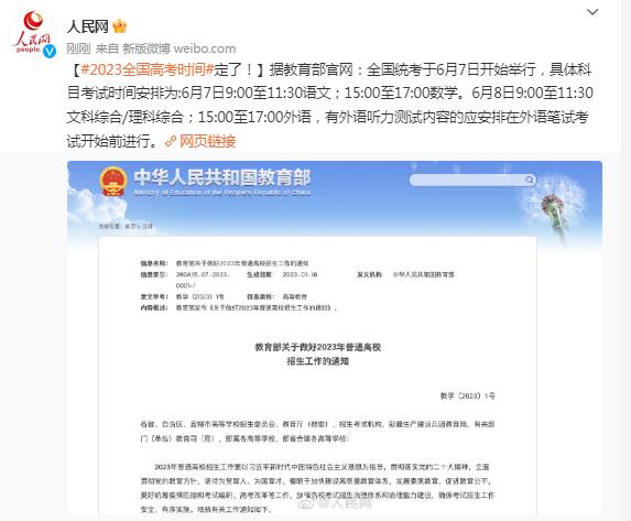 2023年全国高考时间确定(2023全国高考时间)